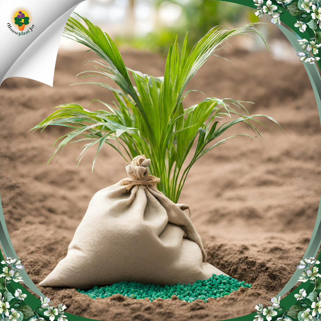 This helps the nutrients slowly soak into the soil and feed your palm’s roots over time. It’s great for giving it a steady supply of nutrients and making the soil healthier.