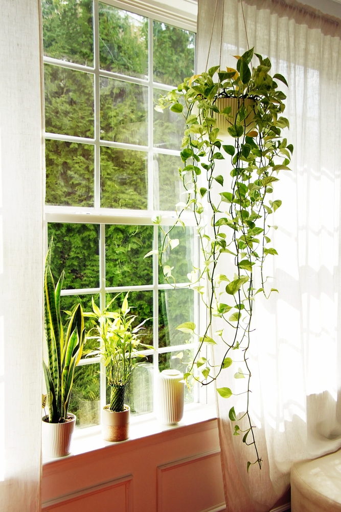 Decorate Overhead with Trailing Pothos Houseplants