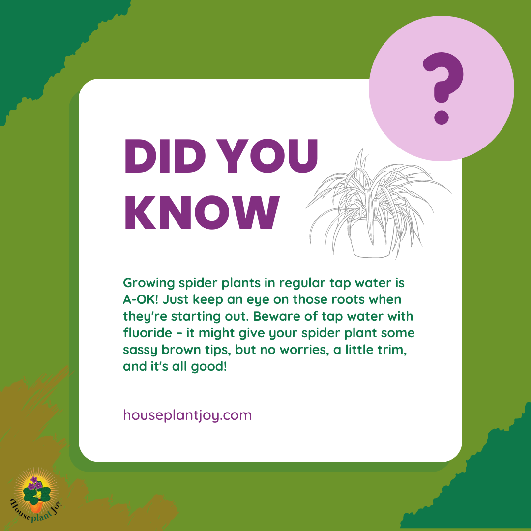 The best type of water to use when growing a spider plant in water is distilled or filtered water. Tap water may contain chemicals like chlorine and fluoride, which can harm the plant. If distilled or filtered water is not readily available, you can let tap water sit out overnight to allow the chlorine to evaporate before using it. Remember to change the water in your spider plant’s container every 1-2 weeks to prevent stagnation and maintain a healthy water environment for the plant.
