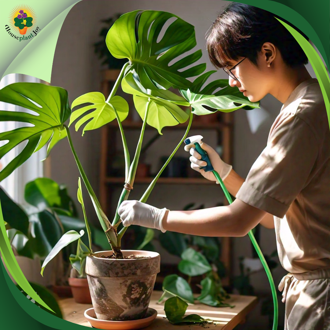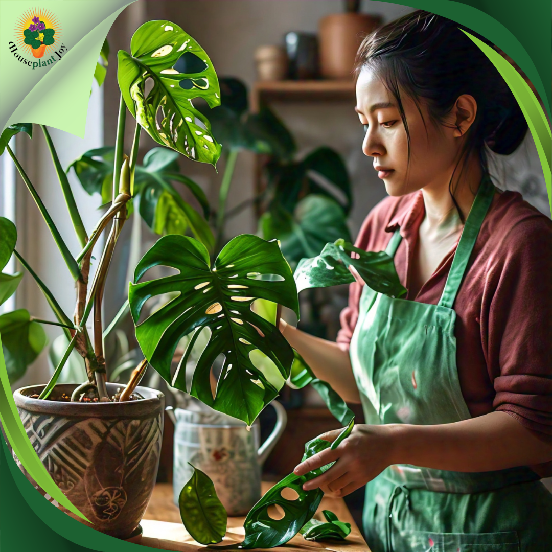 Pruning helps keep your Swiss cheese plant healthy and shapely. Cut off yellow or brown leaves at the base of the stem. This lets the plant focus energy on new growth.